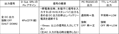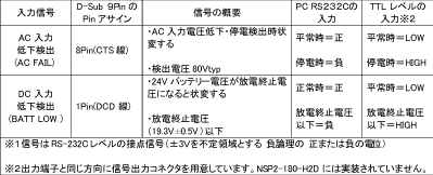 ノンストップ電源のインターフェース条件(RS232Cによる信号インターフェース)について教えてください。 |