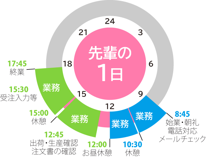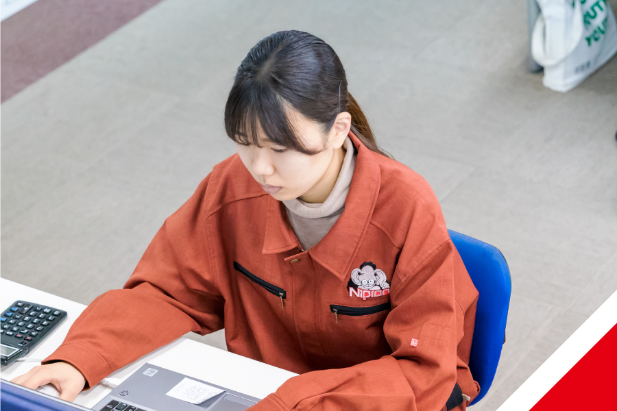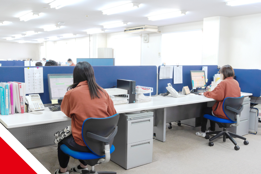 主に、営業アシスタント業務を行っております。営業さんが営業活動に専念できるよう、お客様への納期回答や製品の在庫管理、受注・出荷などの事務処理を行っています。