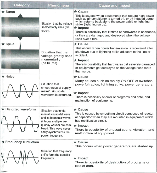Various problems with supply mains supplied by
