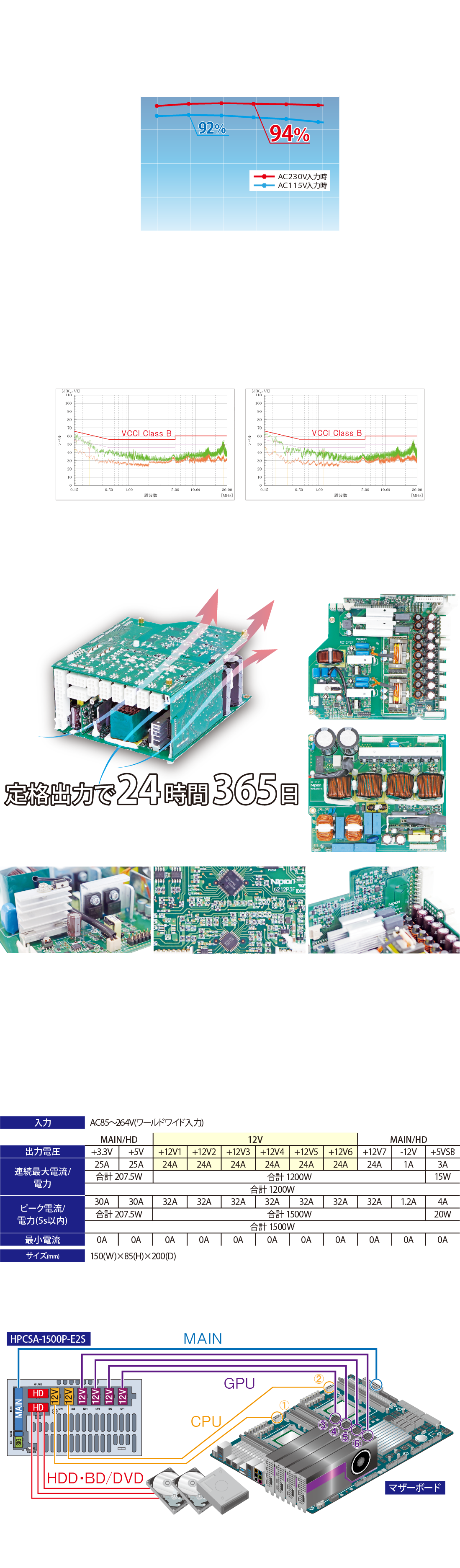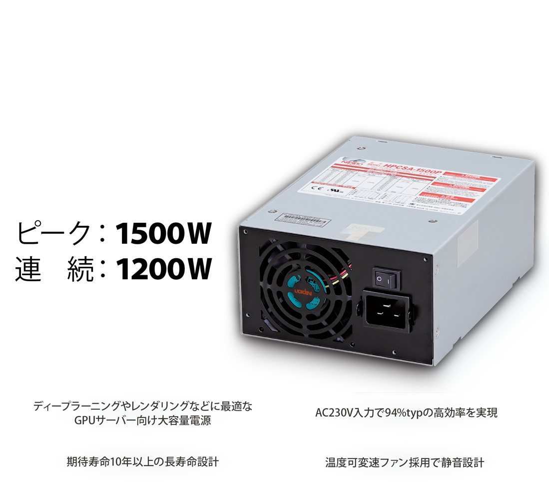 HPCSA-1500Pは、負荷率50%〜100%の高負荷時に高い効率になるよう設計されており、ディープラーニングなど常に高負荷で稼働するGPUサーバーに対して高い信頼性を確保し、安定したシステム運用が可能です。