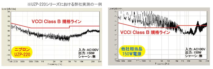 Bをクリア。外部にノイズフィルターを設置する必要が無く、コストダウンと工数負担削減に貢献します。また、漏洩電流はAC100V時0.056mA