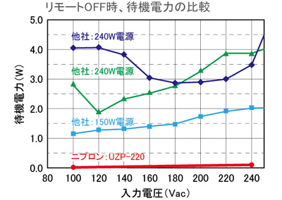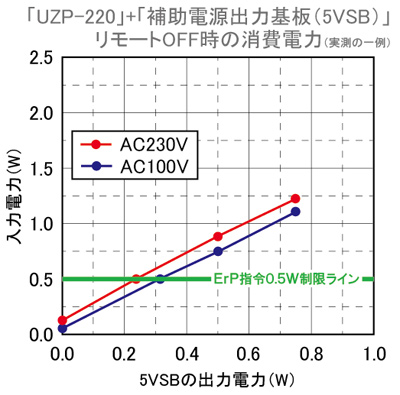 ・リモートOFF時の待機電力を低減 リモートOFF時の待機電力を低減させた、環境に配慮した設計を行っており補助電源基板を接続すればErP指令Lot6に対応できます