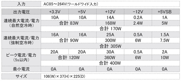 ・ファンレス電源で期待寿命10年以上の長寿命設計(30℃、170W、24時間連続運転)