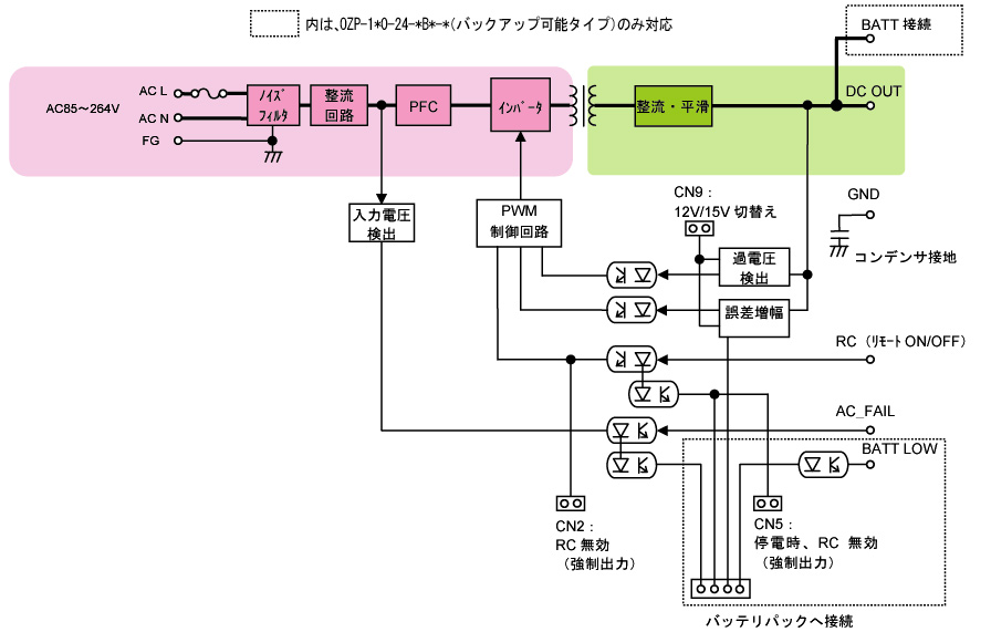 停電発生時UPSの必要がなくバックアップが可能です。(OZP-1*0-24-*B0のみ)