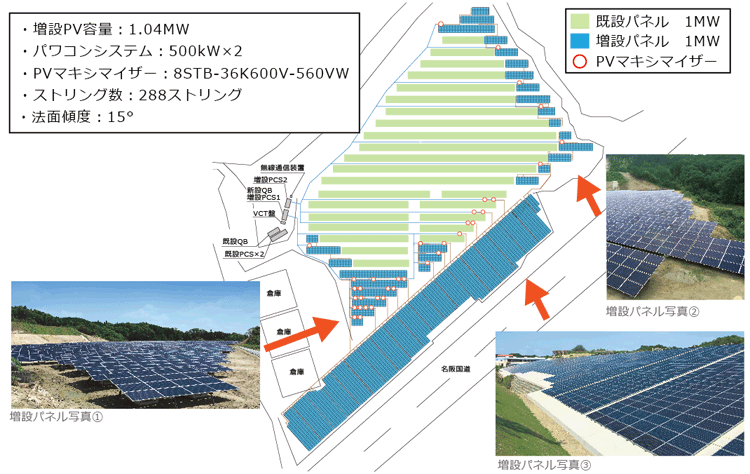 既存メガソーラ発電所の余った土地へ1MWのシステムを増設