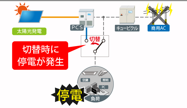 商用電源が停電した際、通常運転から一度系統を切り離し、 自立運転に切替える必要があります。