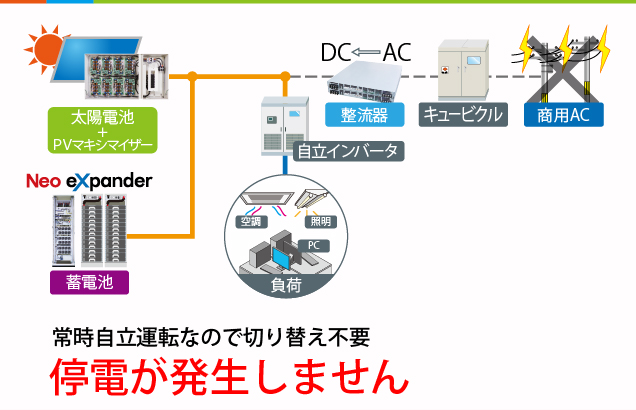 PV Oasisなら常時自立運転のシステムを実現。系統からの切替えが不要な為、