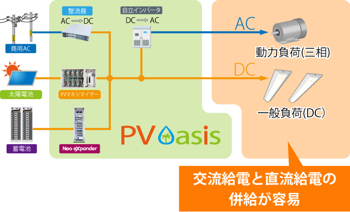 PV Oasisは交流給電と直流給電の併給が容易に行なえます。