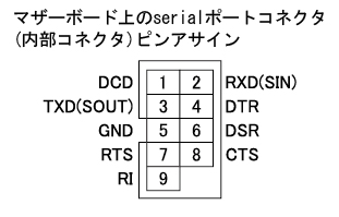 マザーボード上のserialポートコネクタ(内部コネクタ)ピンアサイン